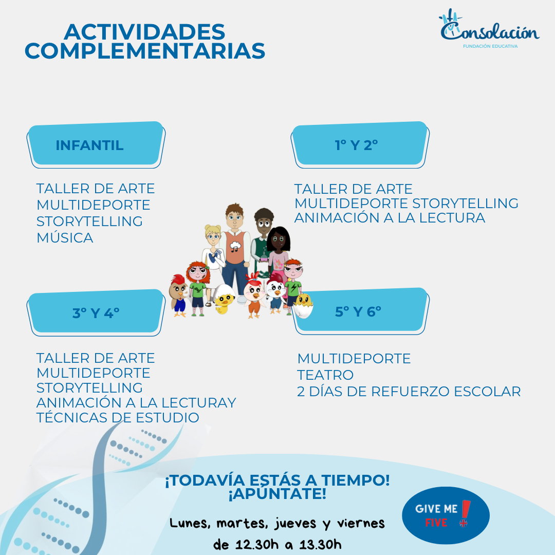 Las actividades complementarias de Educación Infantil y Primaria se impartirán en inglés para favorecer el proyecto bilingüe del centro y el tiempo de exposición del alumnado al idioma extranjero.