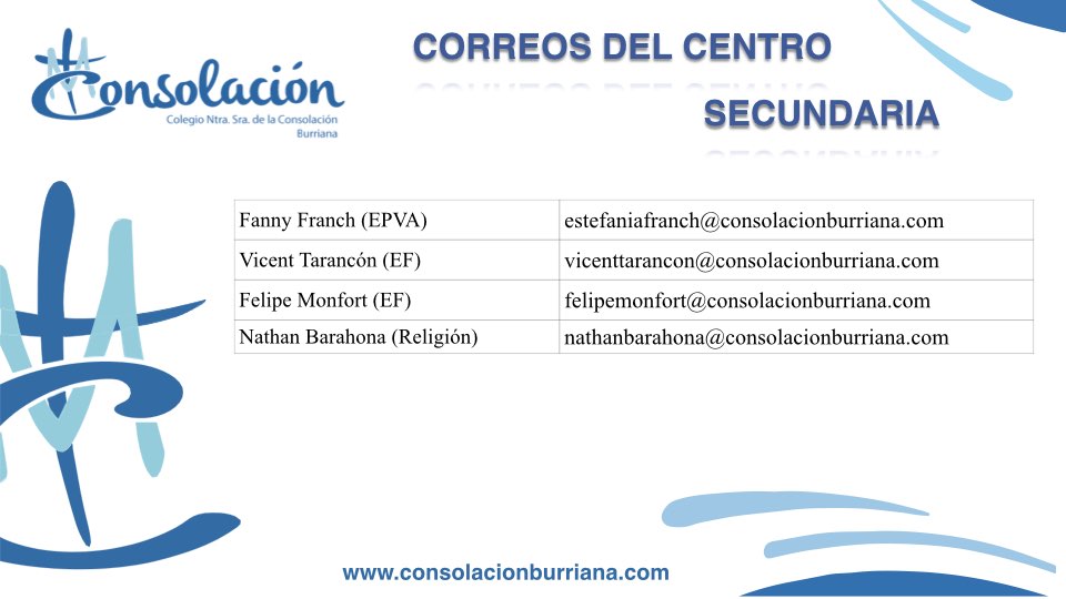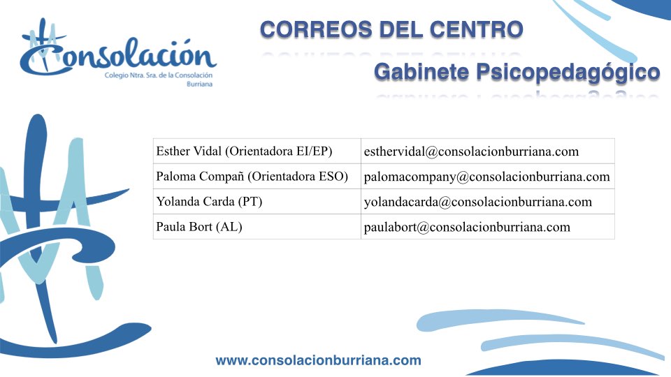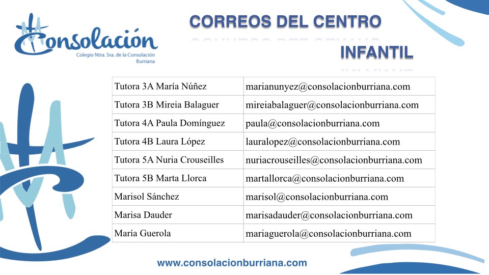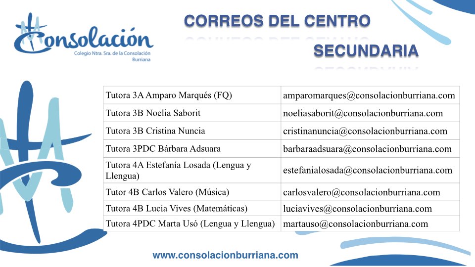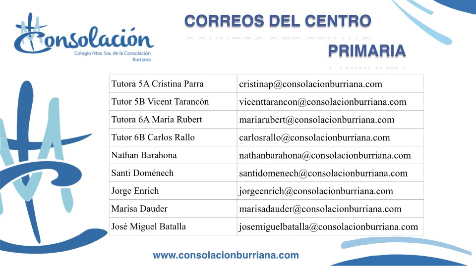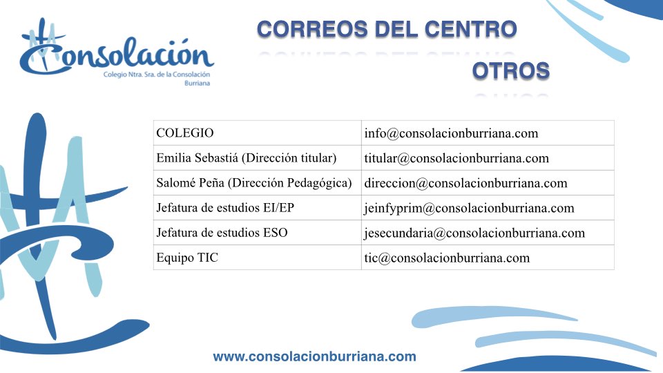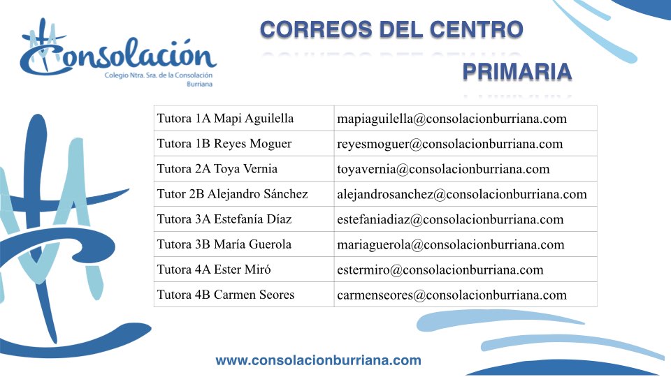 Os presentamos los correos electrónicos de todo el personal del centro por si se desea contactar